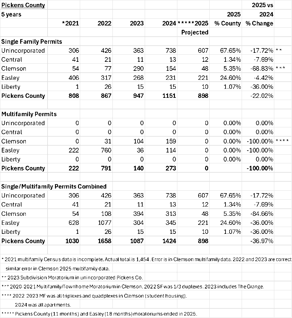 The county only breaks out the City of Anderson and lumps the rest of the cities and towns in the unincorporated area. The City of Anderson only issues about 16% of the building permits, but permits in the city jumped by 50% in 2025.